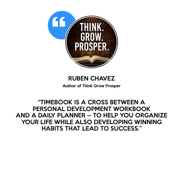 TimeBook is a cross between a personal development workbook and a daily planner -- to help you organize your life while also developing winning habits that lead to success.